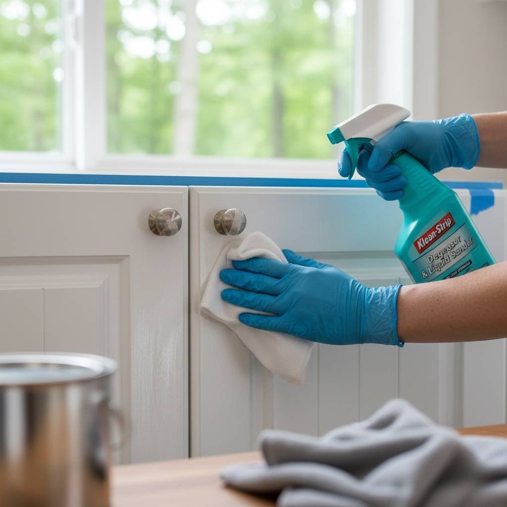 Kitchen cabinets accumulate grease, oils, and residue, especially around the stove. Proper cleaning is the most important step when skipping sanding.